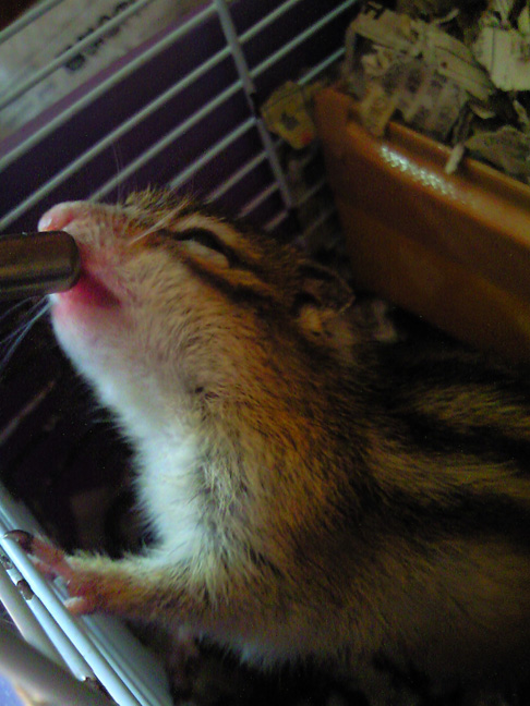 お休みの上天気が良くあったかい一日だったので、冬眠中のはずの我が家の愛リス・ルルが巣から顔を出してくれたので、水を飲んでるところを撮ってみました。